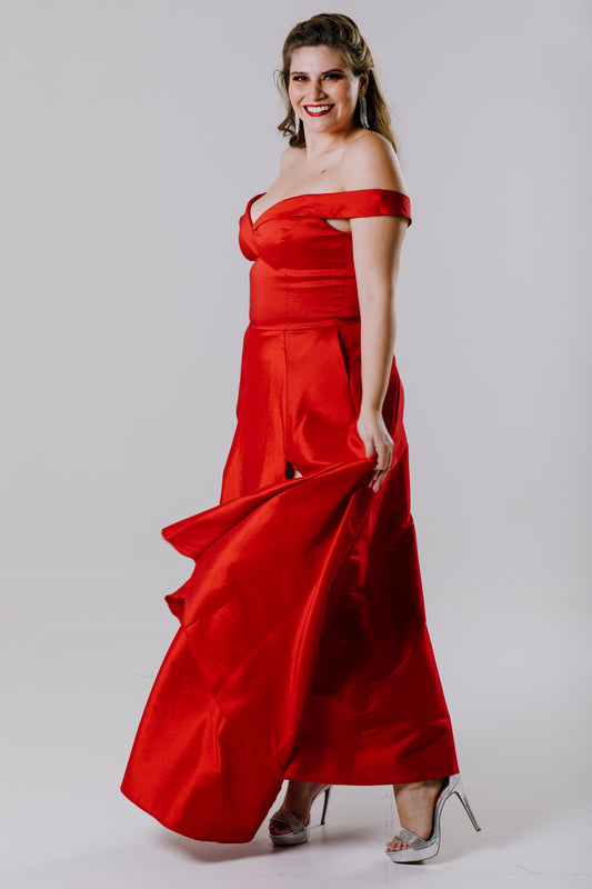 Vestido largo con abertura y hombros descubiertos. -"FLORENCIA"