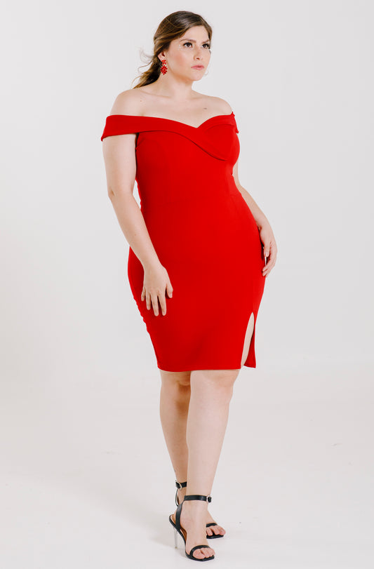 Vestido Con Abertura y Hombros Descubiertos - FLORENTINA