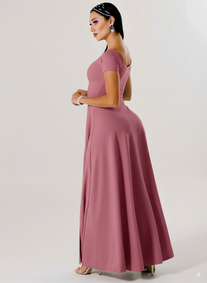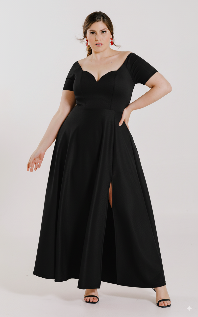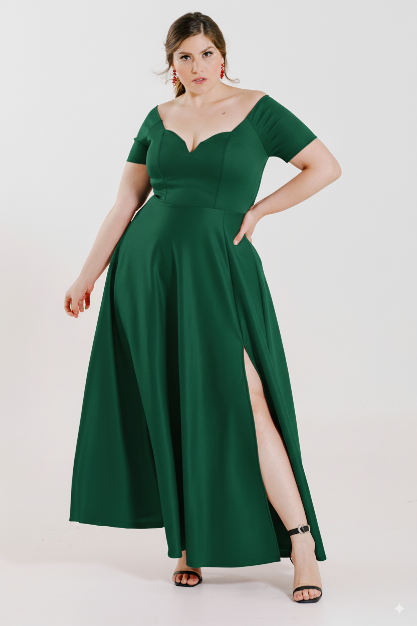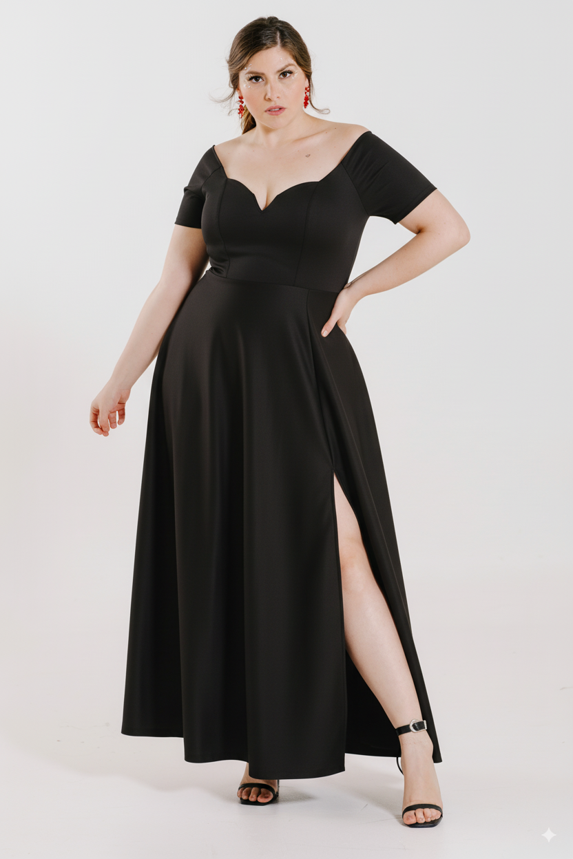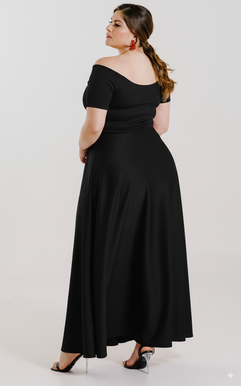 Vestido Largo con Abertura Hombros al Descubierto - "BONITA ABERTURA"
