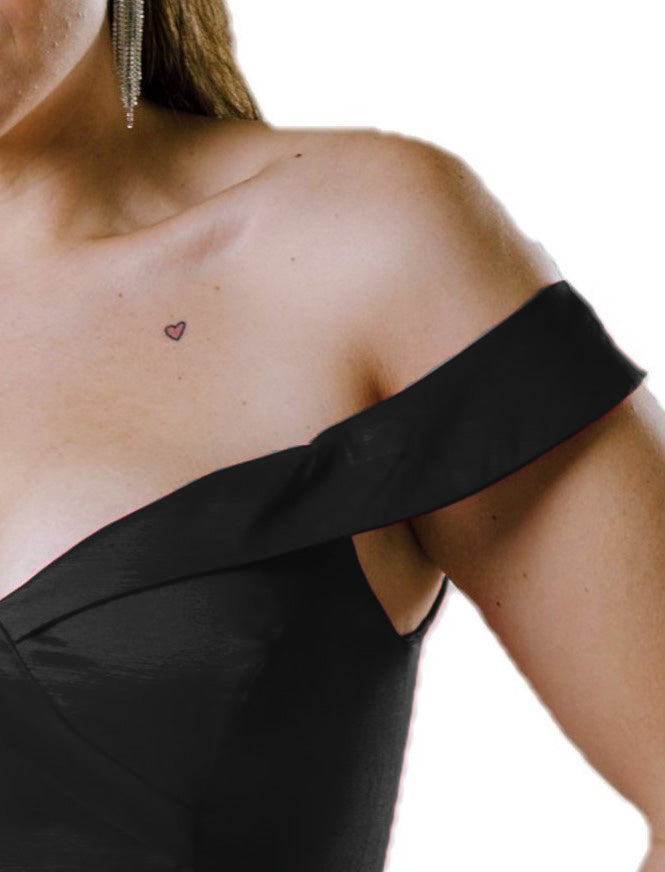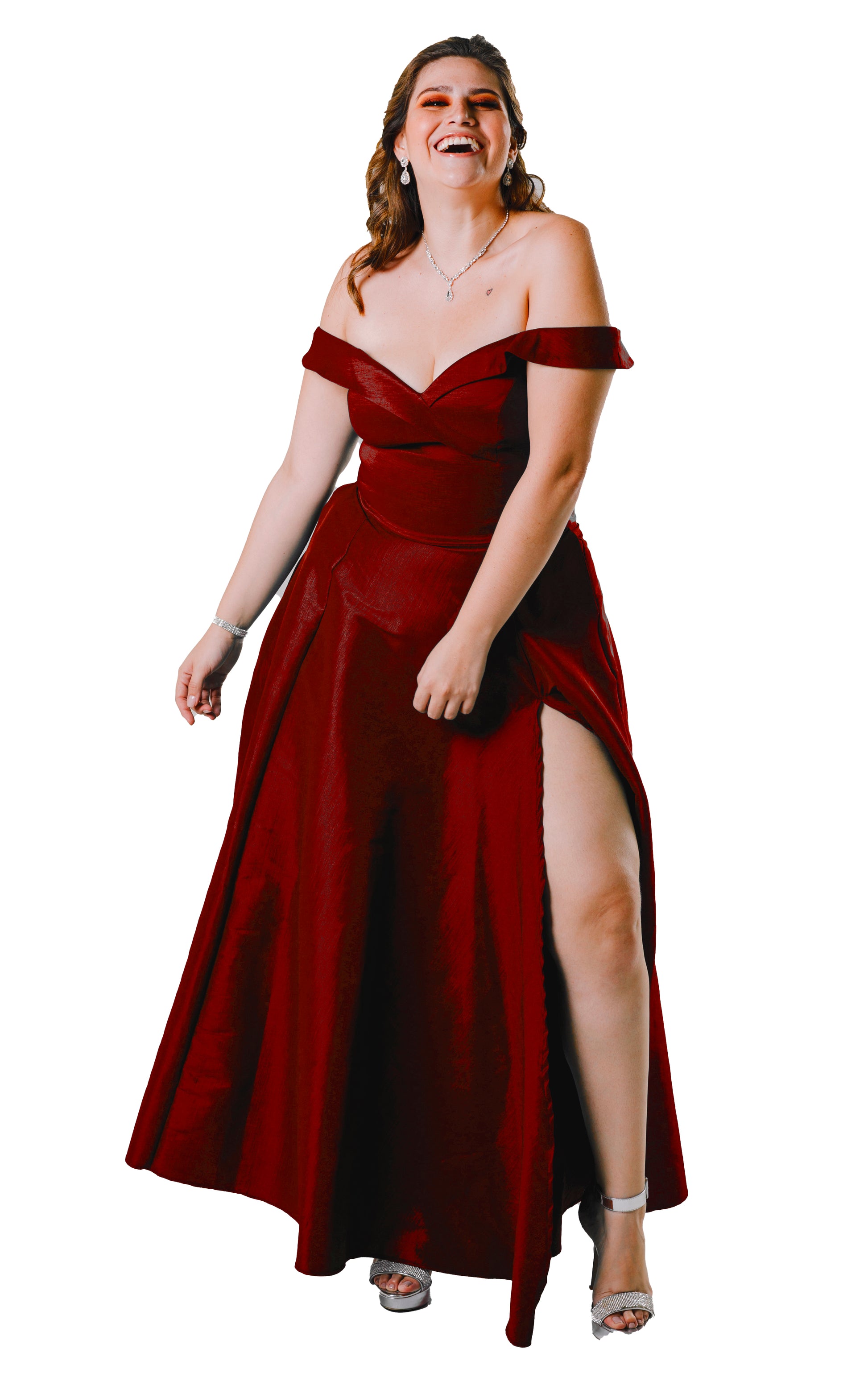 Vestido largo con abertura y hombros descubiertos. -"FLORENCIA"