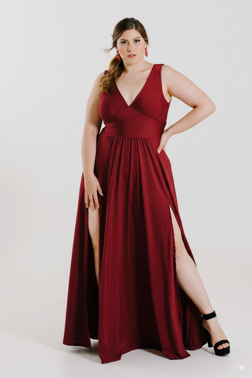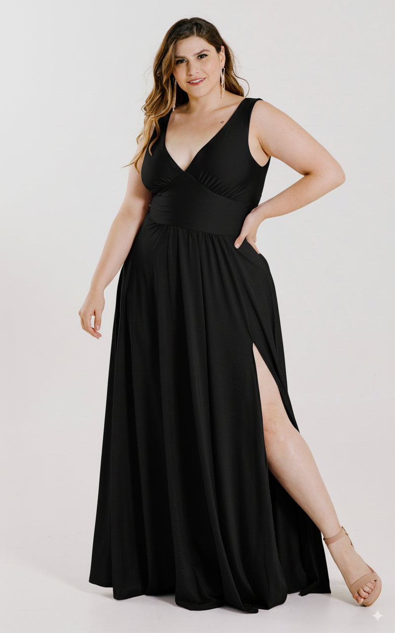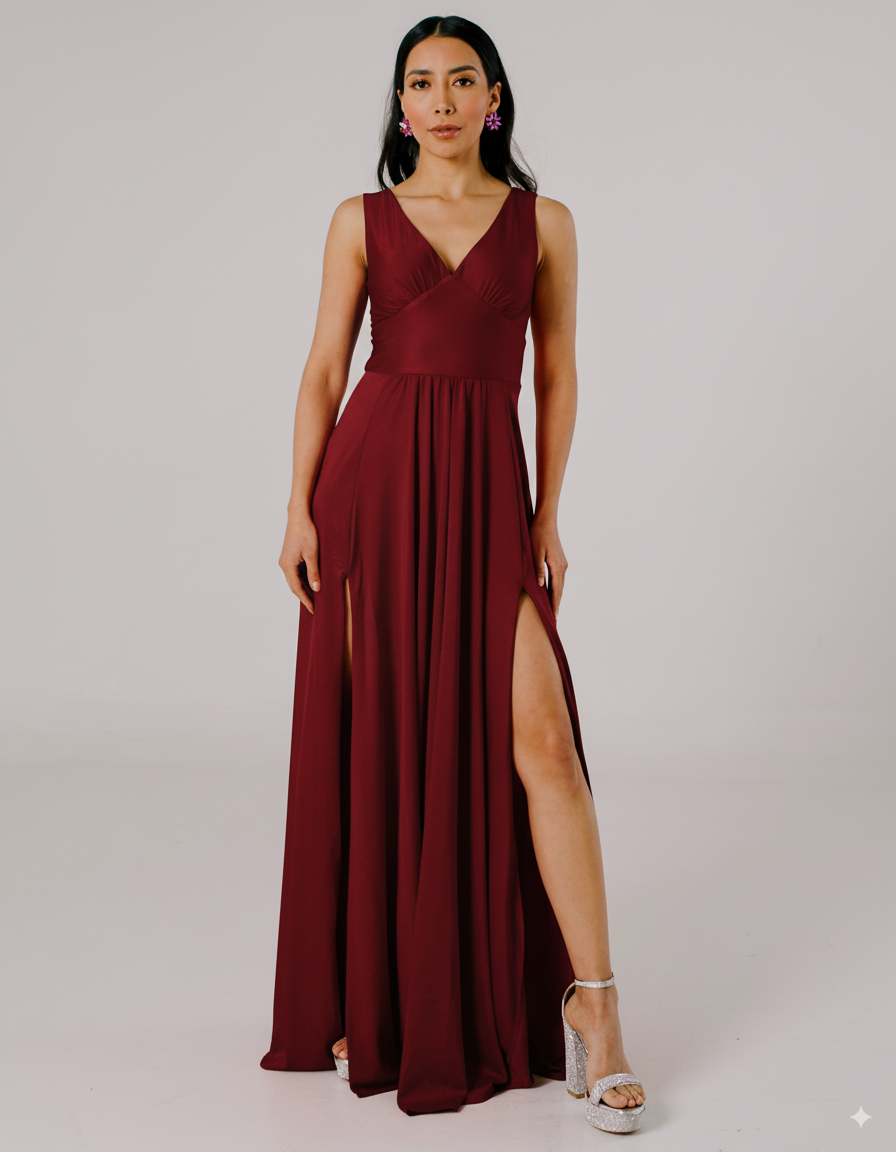 Vestido Largo De Lickra con Abertura - CRISTINA